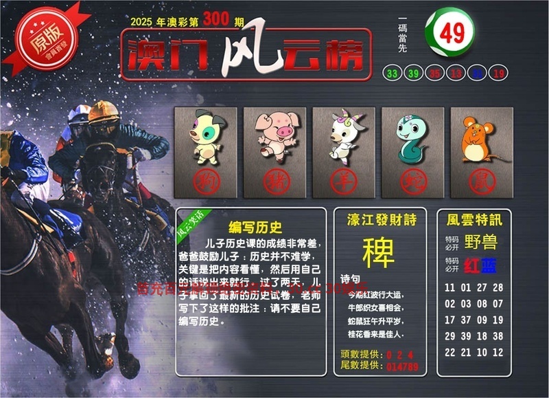 | 299期:六肖中特〖狗马羊猪鼠鸡〗开:蛇49错 |