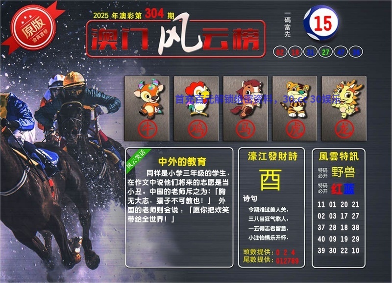 | 303期:六肖中特〖狗羊虎马兔蛇〗开:兔15准 |
